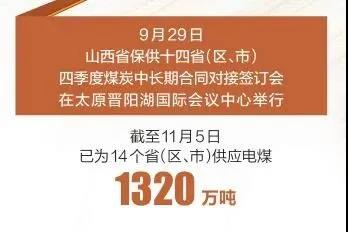山西作為全國的產(chǎn)煤主要省份,積極貫徹落實黨中央、國務(wù)院關(guān)于做好煤炭保供穩(wěn)價工作、確保群眾溫暖過冬的決策部署,發(fā)揮能源大省的使命擔當,站在講貢獻、講大局、講落實的高度,在基本滿足本省民生用煤需求的基礎(chǔ)上,按照“雙控”要求限制高耗能企業(yè)用煤,把有限的能源不遺余力地貢獻出來,全力以赴為用煤緊張的省份提供適銷對路的優(yōu)質(zhì)煤炭,推動煤炭價格理性回歸,為保障國家能源安全和群眾溫暖過冬作出了積極貢獻。 推動煤炭增產(chǎn)增供 9月29日,“山西省保供十四省(區(qū)、市)四季度煤炭中長期合同對接簽訂會”在太原晉陽湖國際會議中心舉行。會上,山西與河北、山東、江蘇、浙江、天津等14個?。▍^(qū)、市)簽訂四季度煤炭中長期保供合同,保障能源供應(yīng)。截至11月5日,已為14個?。▍^(qū)、市)供應(yīng)電煤1320萬噸。