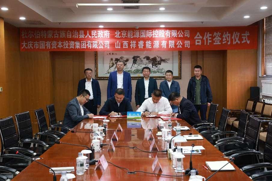 9月28日上午,祥睿能源簽約黑龍江省杜爾伯特蒙古族自治縣人民政府,與北京能源國(guó)際控股有限公司、大慶市國(guó)有資本投資集團(tuán)有限公司共同合作風(fēng)光制氫制航油項(xiàng)目。這個(gè)項(xiàng)目的簽約,標(biāo)志著祥睿能源由綠色數(shù)字、綠色運(yùn)營(yíng)升級(jí)到綠色科技生態(tài)體構(gòu)建和運(yùn)營(yíng)體系的實(shí)現(xiàn)。杜爾伯特蒙古族自治縣縣委書(shū)記張劍、黑龍江省大慶市商務(wù)局局長(zhǎng)董輝、杜爾伯特蒙古族自治縣副縣長(zhǎng)田偉,大慶國(guó)投集團(tuán)黨委委員、副總經(jīng)理王世江,北京能源國(guó)際控股有限公司東北公司總經(jīng)理侯坤、總監(jiān)張紅喬,祥睿能源董事長(zhǎng)王正通及黑龍江祥睿總經(jīng)理?xiàng)钫疾?、副總?jīng)理李殿順等有關(guān)領(lǐng)導(dǎo)和人員出席簽約儀式。在簽約儀式上,杜蒙縣副縣長(zhǎng)田偉介紹了參會(huì)來(lái)賓并宣布“風(fēng)光制氫制航油項(xiàng)目簽約儀式”正式開(kāi)始。