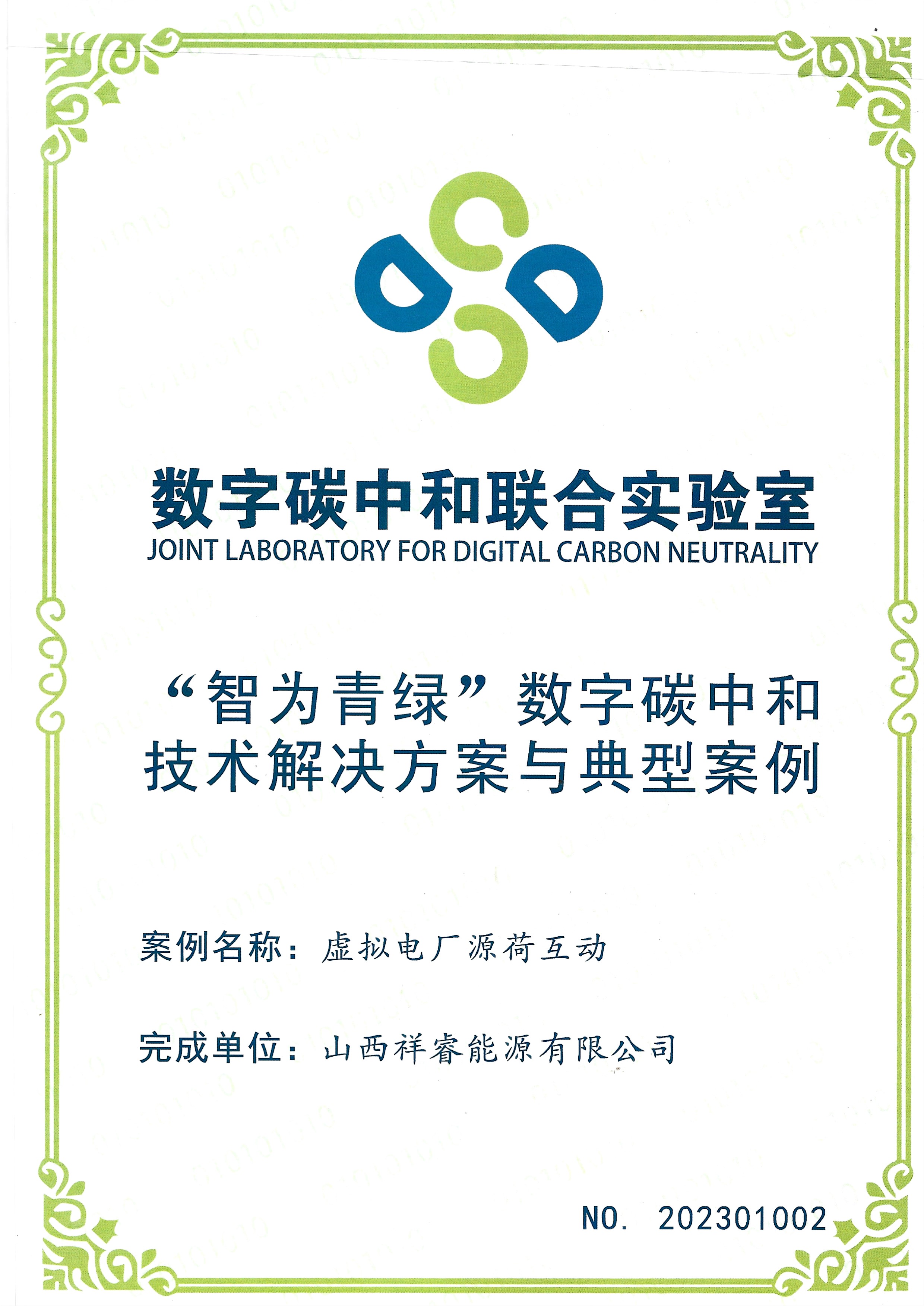 | 祥睿能源《虛擬電廠源荷互動》入選數(shù)字碳中和實(shí)驗室“智為青綠”典型案例 |