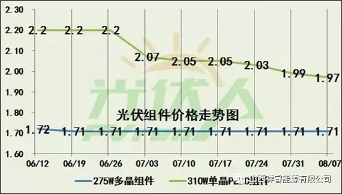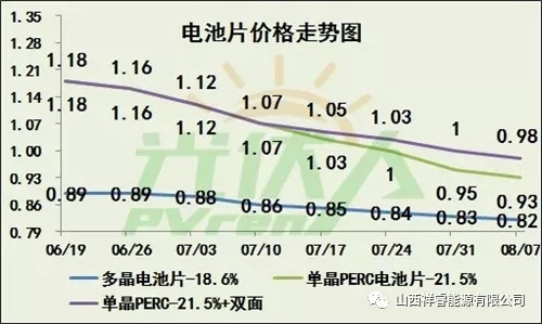 單晶PERC電價(jià)的價(jià)格相比6月份價(jià)格降幅超過20%。已經(jīng)連續(xù)9個(gè)星期降價(jià),相信很快將會(huì)傳到到組件端