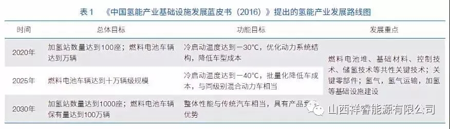 2.4 韓國氫能與燃料電池發(fā)展現(xiàn)狀 韓國在氫能和燃料電池領(lǐng)域也有較強的規(guī)劃布局,但是其相關(guān)技術(shù)實力較歐、美、日略遜一籌。以現(xiàn)代等汽車企業(yè)為依托,韓國政府未來 5 年內(nèi)用于氫燃料電池以及加氫站的補貼將達到 20 億歐元。目標(biāo)是到 2022 年為 15 000 輛燃料電池汽車和 1 000 輛氫氣公交車提供資金。其中資助計劃包括 310 個新的氫氣加氣站,政府還將制定使用法規(guī)[8]。韓國政府于 2019 年 1 月發(fā)布“氫能經(jīng)濟發(fā)展路線圖”,旨在大力發(fā)展氫能產(chǎn)業(yè),以引領(lǐng)全球氫燃料電池汽車和燃料電池市場發(fā)展。 根據(jù)該路線圖,韓國政府計劃到 2040 年氫燃料電池汽車累計產(chǎn)量由 2018 年的 2 000 余輛增至 620 萬輛,氫燃料電池汽車充電站從現(xiàn)有的 14 個增至 1 200 個。韓國政府表示將開始為燃料電池出租車和卡車提供補貼,到 2022 年燃料電池公交車數(shù)量將增加到 2 000 輛,并預(yù)計在 2021 年開始用燃料電池車取代燃油警車。 在固定式燃料電池方面,韓國目前的發(fā)展重點在于大型燃料電池發(fā)電站。韓國斗山集團是推動該項目建設(shè)的主體。2017 年 6 月,該集團完成了韓國最大的氫能燃料電池發(fā)電站的建設(shè),而該發(fā)電站的建設(shè)成本大約有 3 600 萬美元。據(jù)報道,該發(fā)電站每年可生產(chǎn) 144 臺 440 千瓦的燃料電池系統(tǒng),可以滿足市場的需求。 3 國內(nèi)氫能與燃料電池發(fā)展現(xiàn)狀及分析 3.1 國內(nèi)氫能產(chǎn)業(yè)鏈的結(jié)構(gòu)分析 氫能產(chǎn)業(yè)鏈主要包括:氫的制取、儲存、運輸和應(yīng)用等環(huán)節(jié)。氫既可廣泛應(yīng)用于傳統(tǒng)領(lǐng)域,又可應(yīng)用于新興的氫能車輛(包括乘用車、商用車、物流車、叉車、軌道車等)以及氫能發(fā)電(包括熱電聯(lián)供分布式發(fā)電、發(fā)電儲能、備用電源等)。 為加快發(fā)展中國的氫能產(chǎn)業(yè),依據(jù)目前的資源條件和能源產(chǎn)業(yè)狀況,應(yīng)在加強氫安全的基礎(chǔ)上,積極推行氫源多元化及氫能多元化和規(guī)?;瘧?yīng)用。我國近年來每年純度 99% 以上氫氣的使用量約 700 億立方米(約 600 萬噸),年產(chǎn)值 1 200 億元人民幣以上。目前國內(nèi)發(fā)展氫能的生產(chǎn)方式,主要有煤制氫、天然氣制氫和工業(yè)副產(chǎn)氫,其中工業(yè)副產(chǎn)氫追溯其上游一次能源主要還是煤和天然氣。 因此,目前國內(nèi)氫能生產(chǎn)主要還是依靠化石能源,而電解水制氫僅占比 2%—4%,占比較為有限。對于氫能的消費,國內(nèi)大約 90% 或更多純度 99%左右的氫氣都用于煉化產(chǎn)品生產(chǎn)過程中的加氫,以及合成氨、合成甲醇、石油煉化等化工領(lǐng)域,僅有 2%—4% 的氫氣作為工業(yè)氣體用于冶金、鋼鐵、電子、建材、精細化工等行業(yè)的還原氣、保護氣、反應(yīng)氣等,而在燃料電池汽車領(lǐng)域氫能的利用更少??傮w看,目前我國具備一定的氫工業(yè)基礎(chǔ),但是仍然還是以工業(yè)原料為主。氫作為能源消費的市場規(guī)模依然較小。 在氫能和燃料電池發(fā)展方面,我國也一直不落后。2016 年 10 月,中國標(biāo)準(zhǔn)化研究院資源與環(huán)境分院和中國電器工業(yè)協(xié)會發(fā)布的《中國氫能產(chǎn)業(yè)基礎(chǔ)設(shè)施發(fā)展藍皮書(2016)》首次提出了我國氫能產(chǎn)業(yè)的發(fā)展路線圖(表 1)。對我國中長期加氫站和燃料電池車輛發(fā)展目標(biāo)進行了規(guī)劃?!吨袊圃?2025》明確提出燃料電池汽車發(fā)展規(guī)劃,更是將發(fā)展氫燃料電池提升到了戰(zhàn)略高度。目前不論是國內(nèi)的氫能技術(shù),還是氫能產(chǎn)業(yè)基礎(chǔ),雖然都具有一定的戰(zhàn)略規(guī)模,但是與國際最先進水平還有一定的差距。